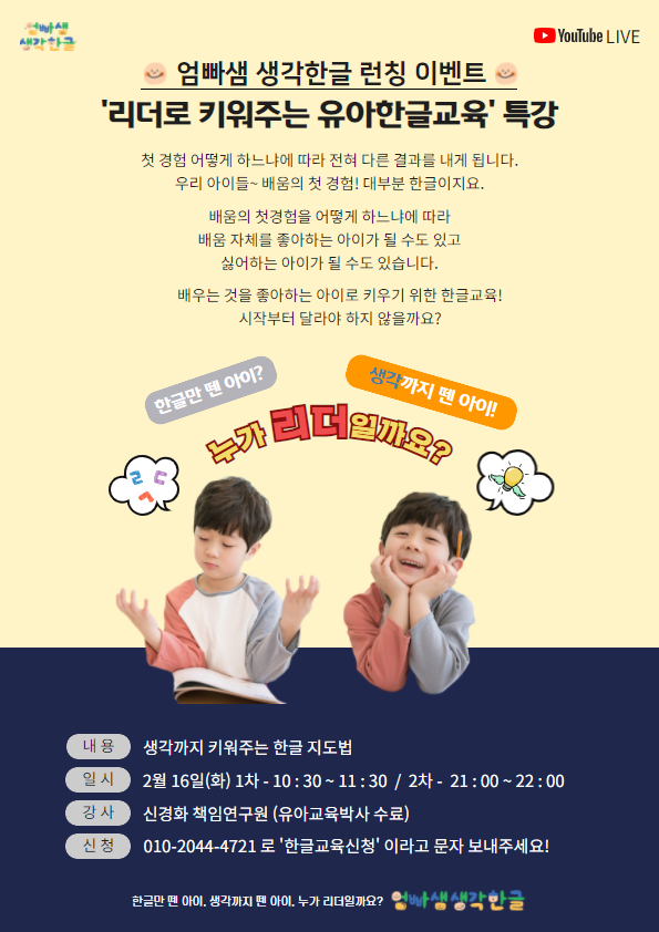 엄빠샘 생각한글 런칭 기념 한글 부모 교육!